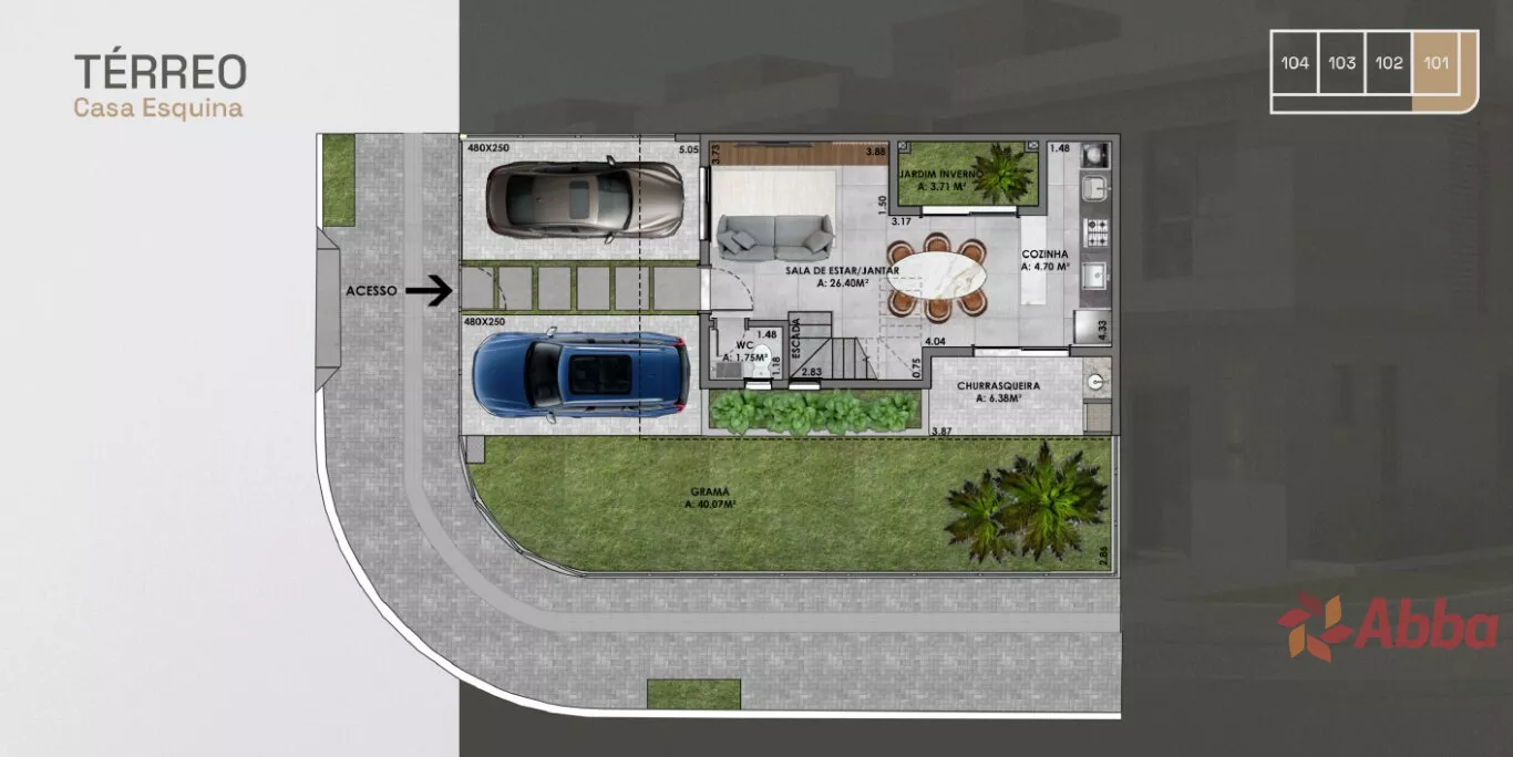 Casa de esquina, 3 dormitórios 1 sendo uma suíte master, banheiro, lavabo, cozinha, vaga para dois carros, jardim de inverno, sala/sala de jantar e espaço gourmet.